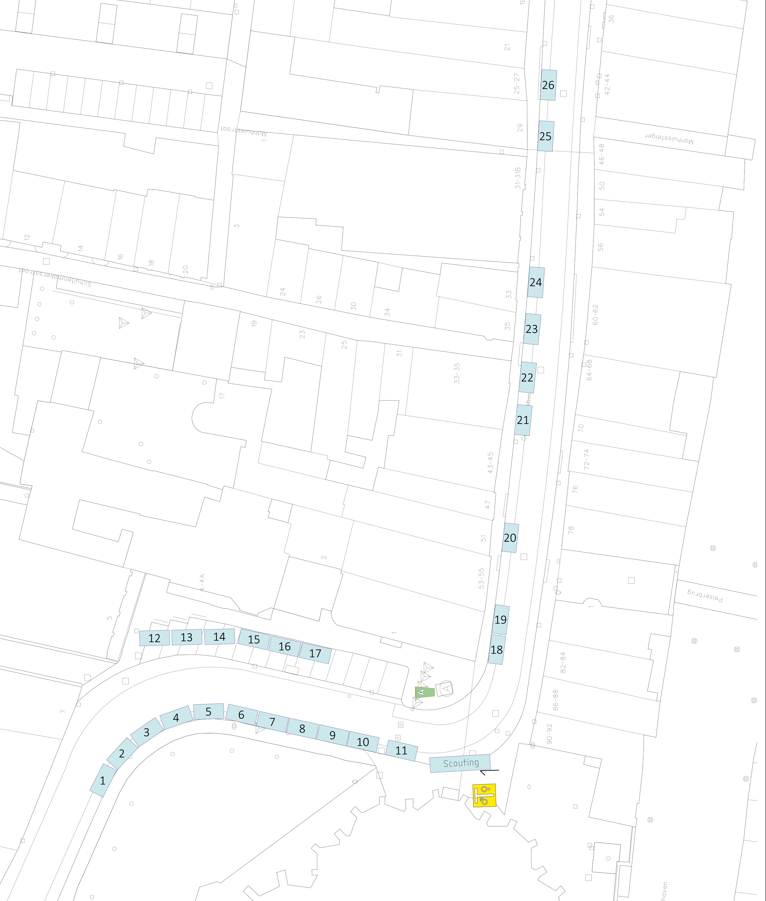 Klik op een groen vakje met een nummer naar keuze om deze te reserveren. U kunt maximaal twee kramen tegelijk reserveren.