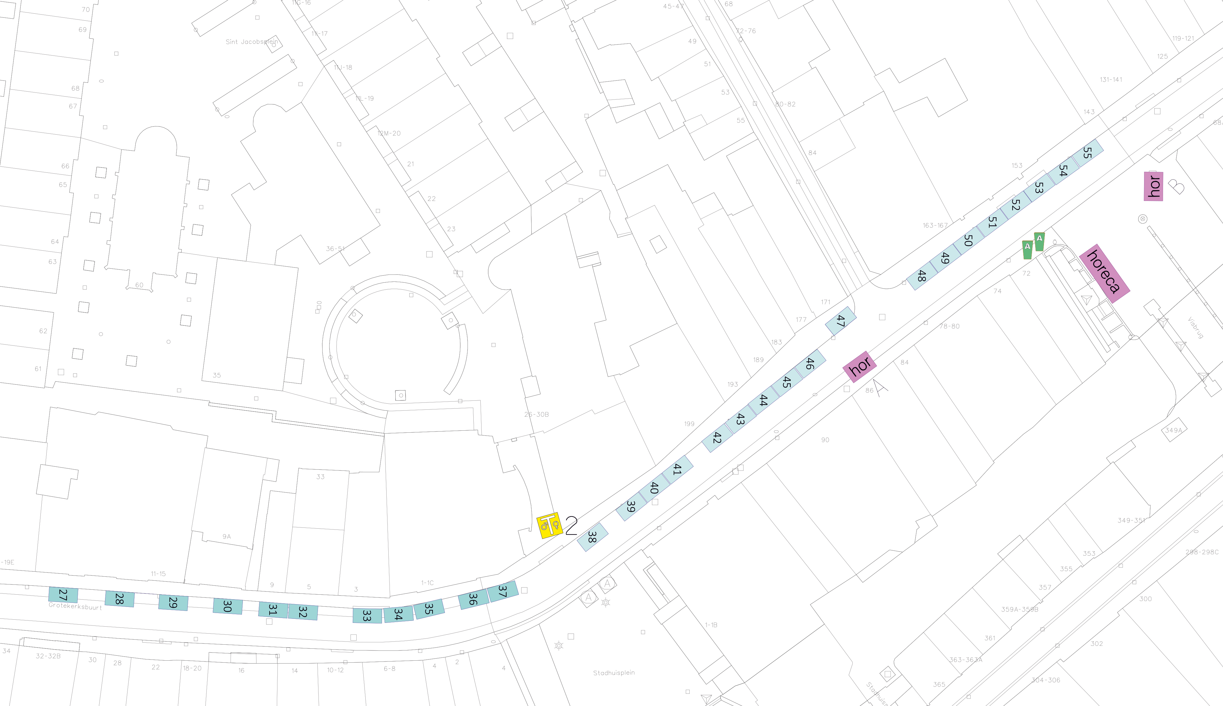 Hieronder kunt u zien welke kramen er nog beschikbaar zijn. Klik op de plattegrond om in te zoomen.
